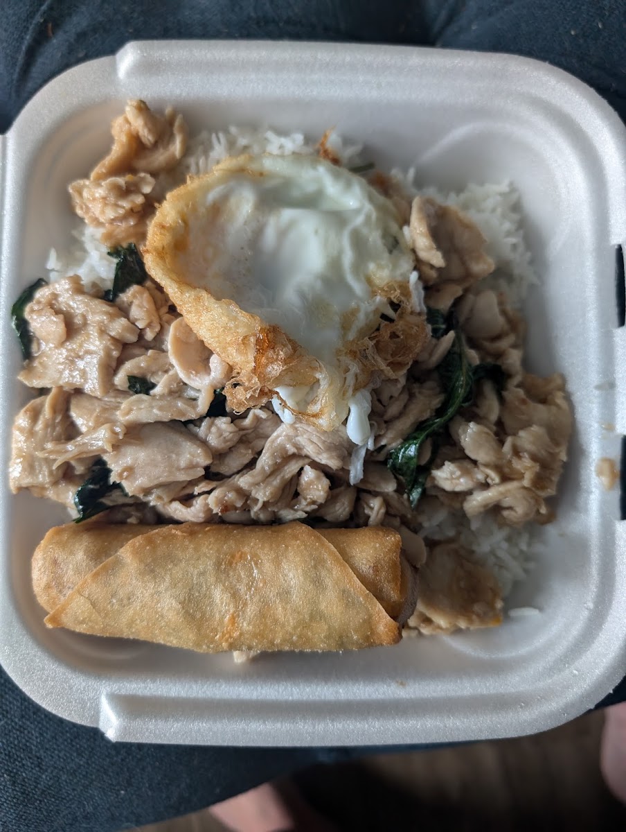 If we lived around here we would go all the time! The pork basil was delicious and my husband said the pork fried rice might be the best he’s ever had. The egg rolls are also large and perfectly crispy!